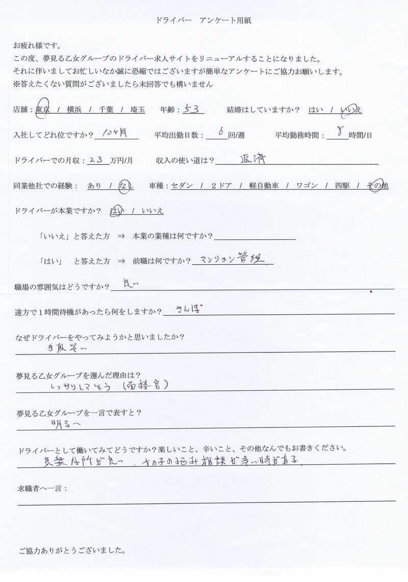 現役ドライバーの方々にアンケートに答えて頂きました。(2013年現在)